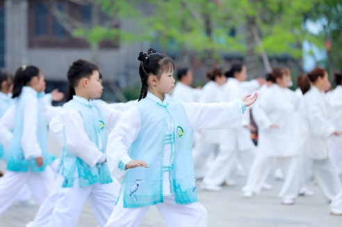作为世界三遗之城,在近千年的时光长河里,都江堰市积淀下了太极养生等丰富而独特的康养资源和养生文化。现场,表演者们动作时而如行云流水,时而刚劲有力,用太极展示这座千年古城的人文风韵,体现都江堰市民的松弛感,为推进全民健身运动、创建都江堰市城市名片起到重要作用。恰逢五一小长假,现场吸引了不少市民游客驻足围观。