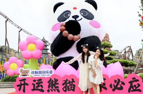 据悉,今年五一假期,成都融创文旅城特别推出“Panda熊抱节”。活动首日,成都融创乐园全新亮相的万平熊猫小镇游人如织,5米巨型毛绒熊猫、8米超大粉色熊猫墙、20米熊猫斑马线吸引大量游客争相打卡,不少游客还和熊猫打起麻将,喝上盖碗茶,切身体会成都人民的松弛感。现场海量熊猫NPC出动和游客跳舞互动,巡游合照。此外,成都融创乐园夜场也于五一起开放,并推出“青城飞仙夜游节”带游客持续嗨玩到22:00。当晚,20大梦幻灯景闪耀夜空,14场青城飞仙诗画实景秀震撼首演。家庭过山车、旋风飞椅等明星设备也在夜场照常开放,让游客从早到晚玩个尽兴。此外,园区两大王牌剧场演出《爱丽丝梦游仙境》和《精忠报国·岳飞传奇》惊喜加场,萌宠乐园新宠黄麂、新生矮马亮相互动,让游客们在景区度过全天欢乐时光。